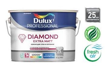 Глубокоматовая водно-дисперсионная краска повышенной износостойкости для высококачественной отделки стен и потолков, максимально укрывистая, с нейтральным запахом. Создает безупречное покрытие без бликов, визуально маскирует несовершенства поверхности. В основе «Алмазной прочности» — точно подобранный баланс минеральных наполнителей и эластичного связующего, который формирует долговечное и суперстойкое покрытие. Краска легко наносится, не образует потеков.