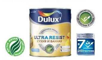 Ультрастойкая водно-дисперсионная краска выдерживает воздействие пара и влаги, защищает поверхность от появления грибка и водорослей, легко моется от загрязнений с использованием чистящих средств. Новые, исключительно износостойкие краски Dulux Ultra Resist с технологией Ultra Resist – это 7-ми кратный запас прочности покрытия ваших стен.