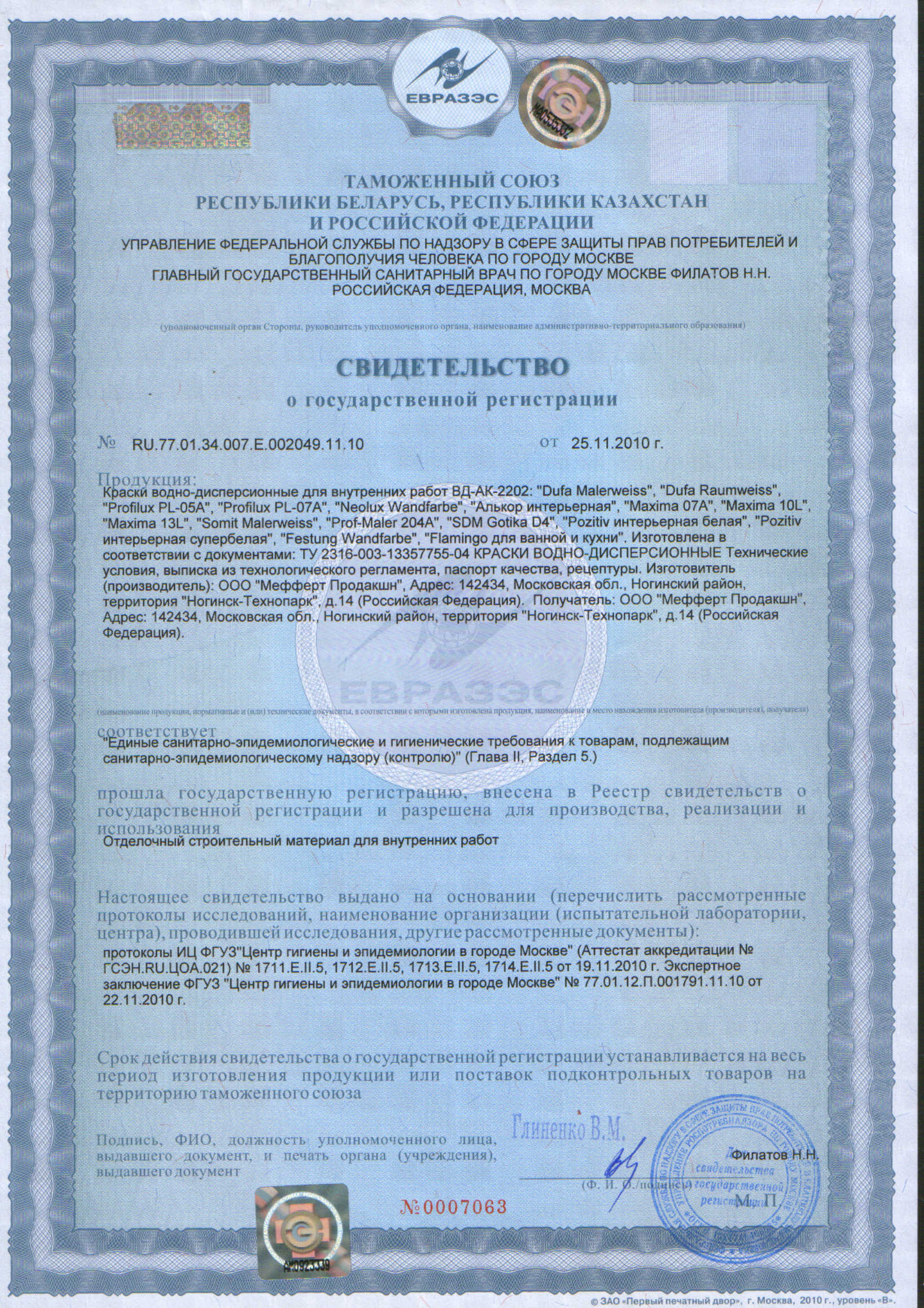 Матовая водно-десперсионная краска, применяется для окраски стен и потолков в жилых и общественных зданиях, помещениях с нормальной влажностью. Хорошо наносится на бетон, штукатурку, кирпич, гипсокартон, обои со структурированной поверхностью.